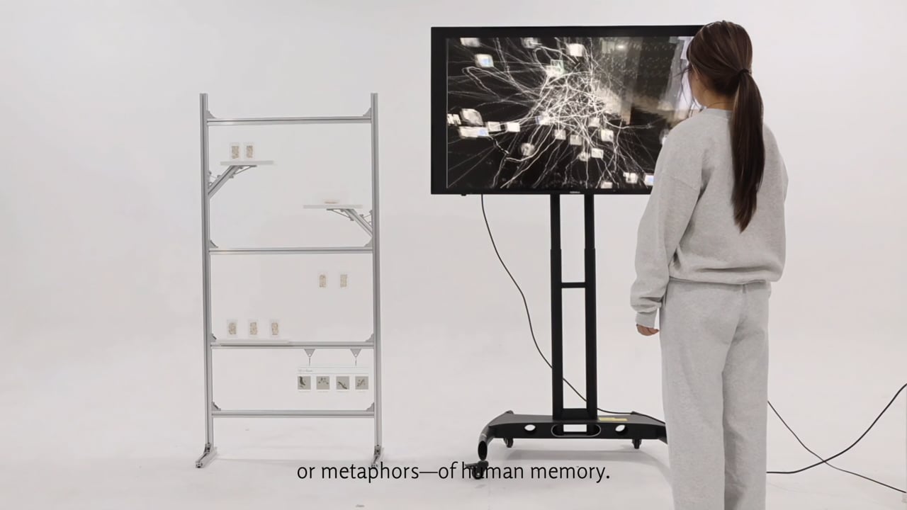 I noticed that the growth patterns of mycelial networks closely resemble human neural structures, and this structural resonance led me to consider their potential similarities in how they transmit information. This observation became the starting point of the project. Through self-cultivated mycelium samples and a sensor-based activation system, the installation generates visuals in which “memory images” continually reconnect and grow in mycelium-like formations. When viewers place a mycelium sa