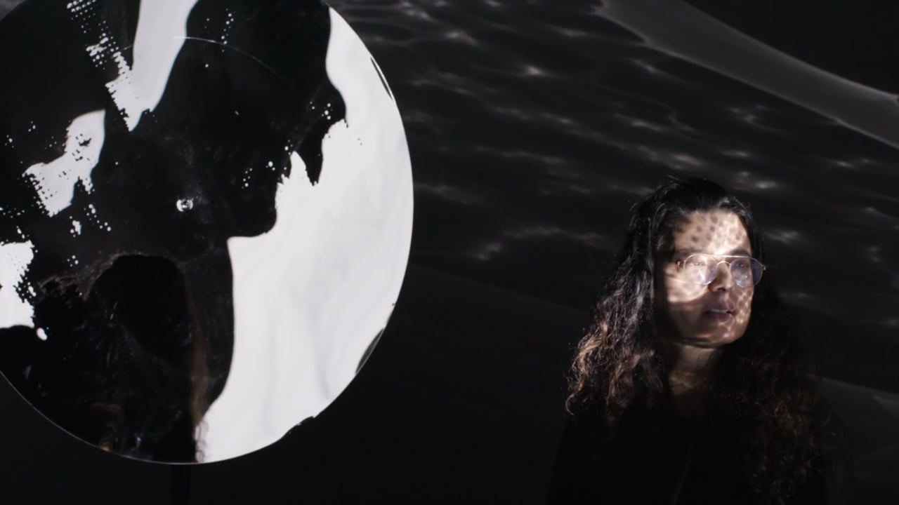 Segment from Sculpting Reflectors - Yael Erel, a short film by Chalkley Calderwood presented at art'otel auditorium, a process film making of mirrored lightscapes, an immersive light and sound installation at art'otel London, Hoxton, part of 2025 London Design Festival, 19 September 2025.