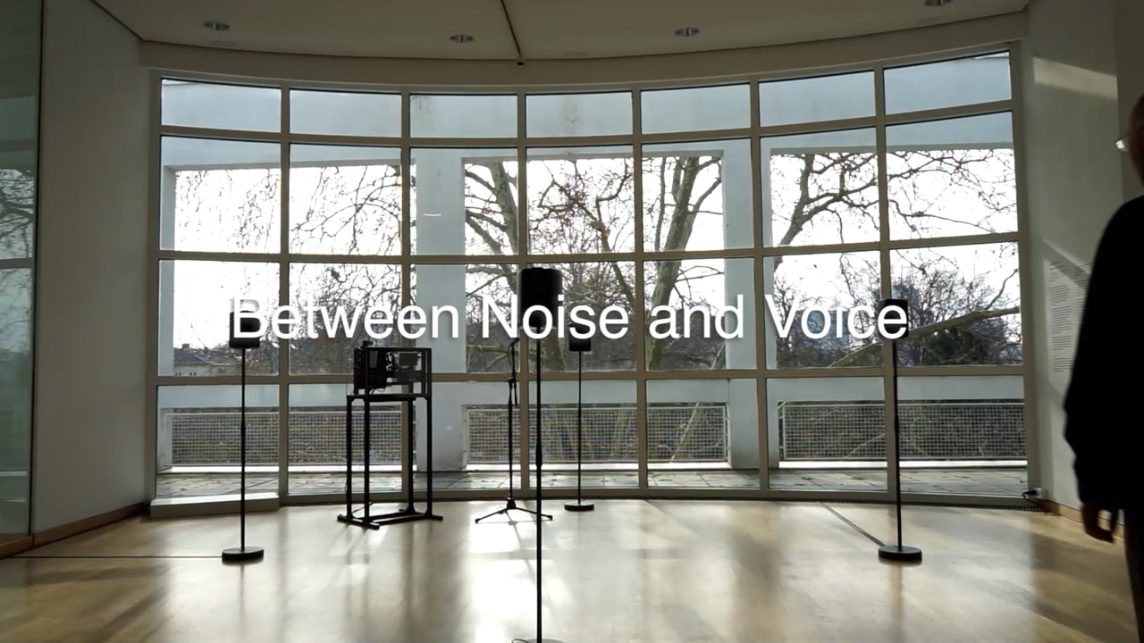 The project was created as part of the exhibition AI Worlding at the MAK – Museum Angewandte Kunst in Frankfurt am Main (2026). Between Noise and Voice is a generative sound installation that explores how the semantics of sound shift within the tension between the human voice and machine interpretation. Visitors speak into a microphone and then enter a quadraphonic sound field in which fragments of their voice reappear as recurring “phantom words.” The spoken voice, together with its emotional